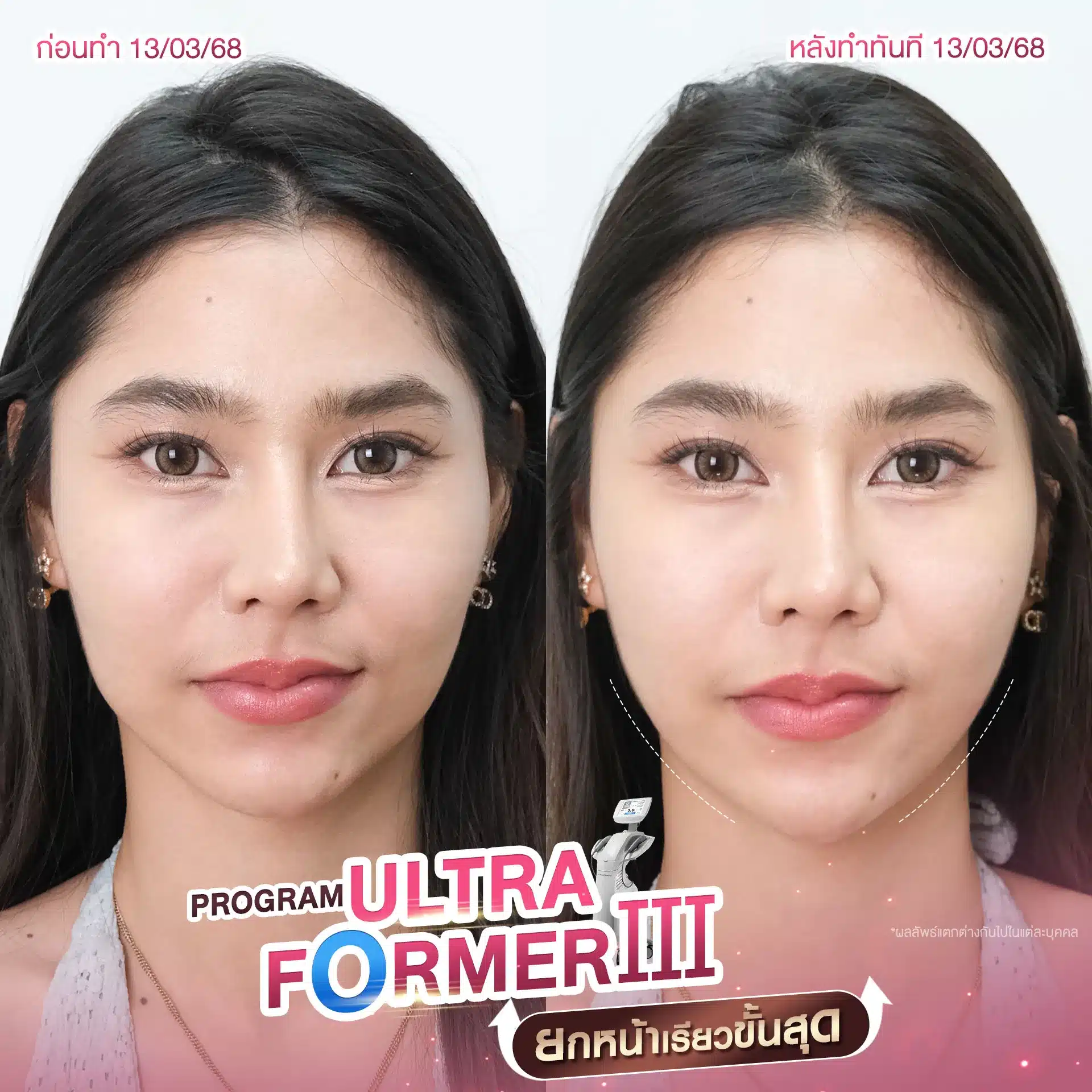 • Ultraformer จะเห็นผลเรื่องผิวแน่น หน้าเรียว และกรอบหน้าชัดขึ้นแบบเป็นธรรมชาติ